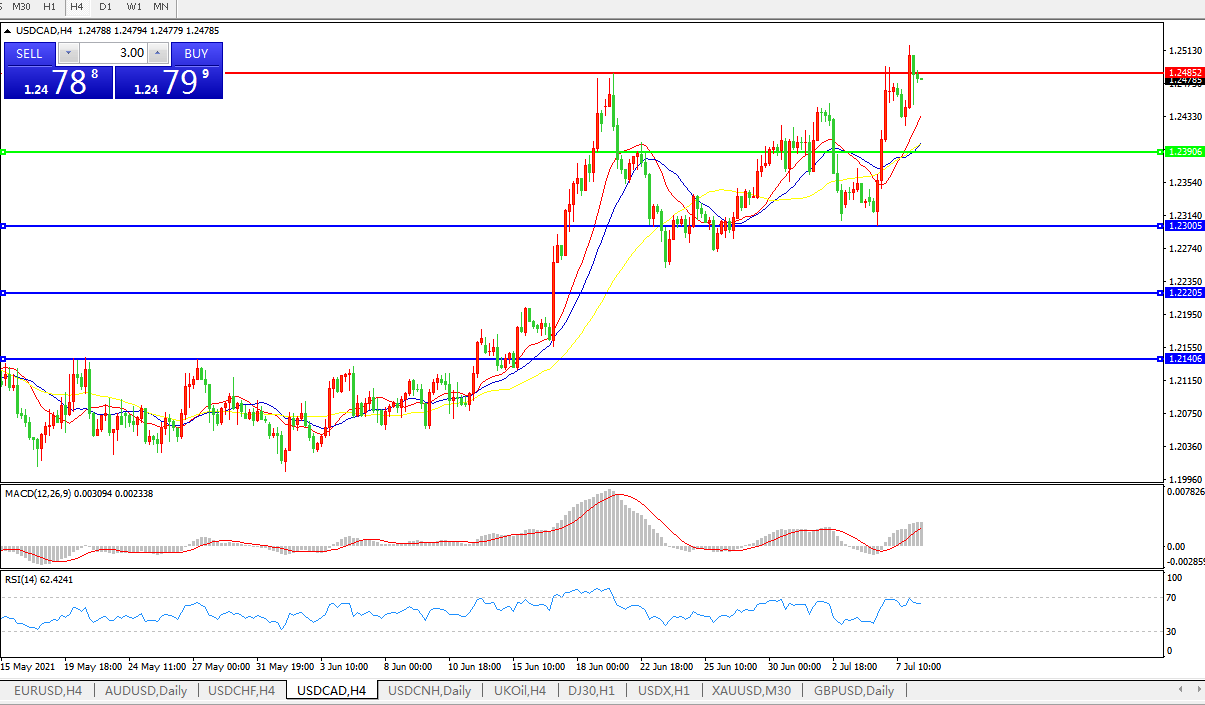美元兑加元USDCAD 4小时图: