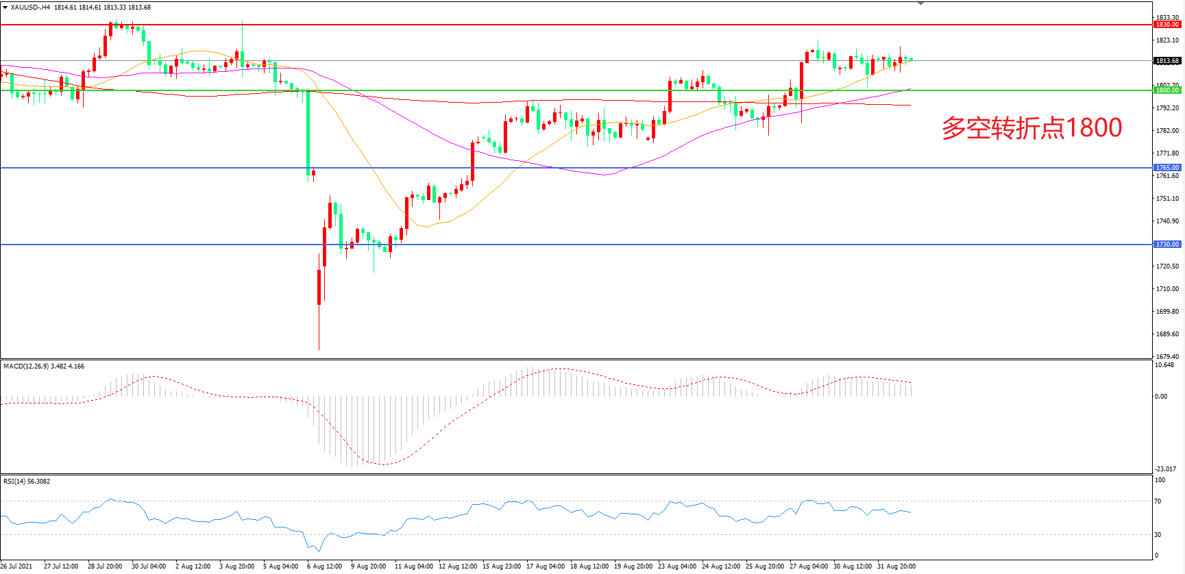 多空转折点:1800.00