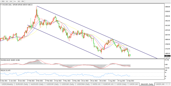 周一国际金价持续下滑,市场将迎来迎接主要央行、尤其是美联储本周大幅加息,以抑制高通胀。但美联储进一步扩幅加息可能性不大。此外,欧洲央行(ECB)决策者的鹰派言论也可能限制金价跌势。