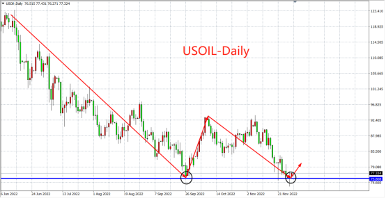 周一(11月28日)因全球经济衰退风险升温及全球第二大经济体疫情管控拖累,WTI原油盘中一度跌至日内低位73.6美元,创2021年12月27日以来新低。不过,其后油价止跌回升,重返76.0美元上方,收复日内全部跌幅。