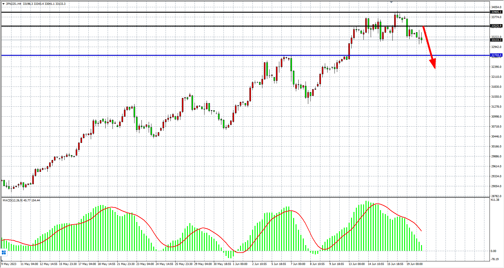 JPN225四小时图