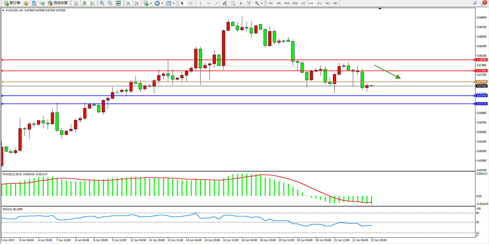 交易策略:0.67636下方看跌,目标0.67345  0.67175