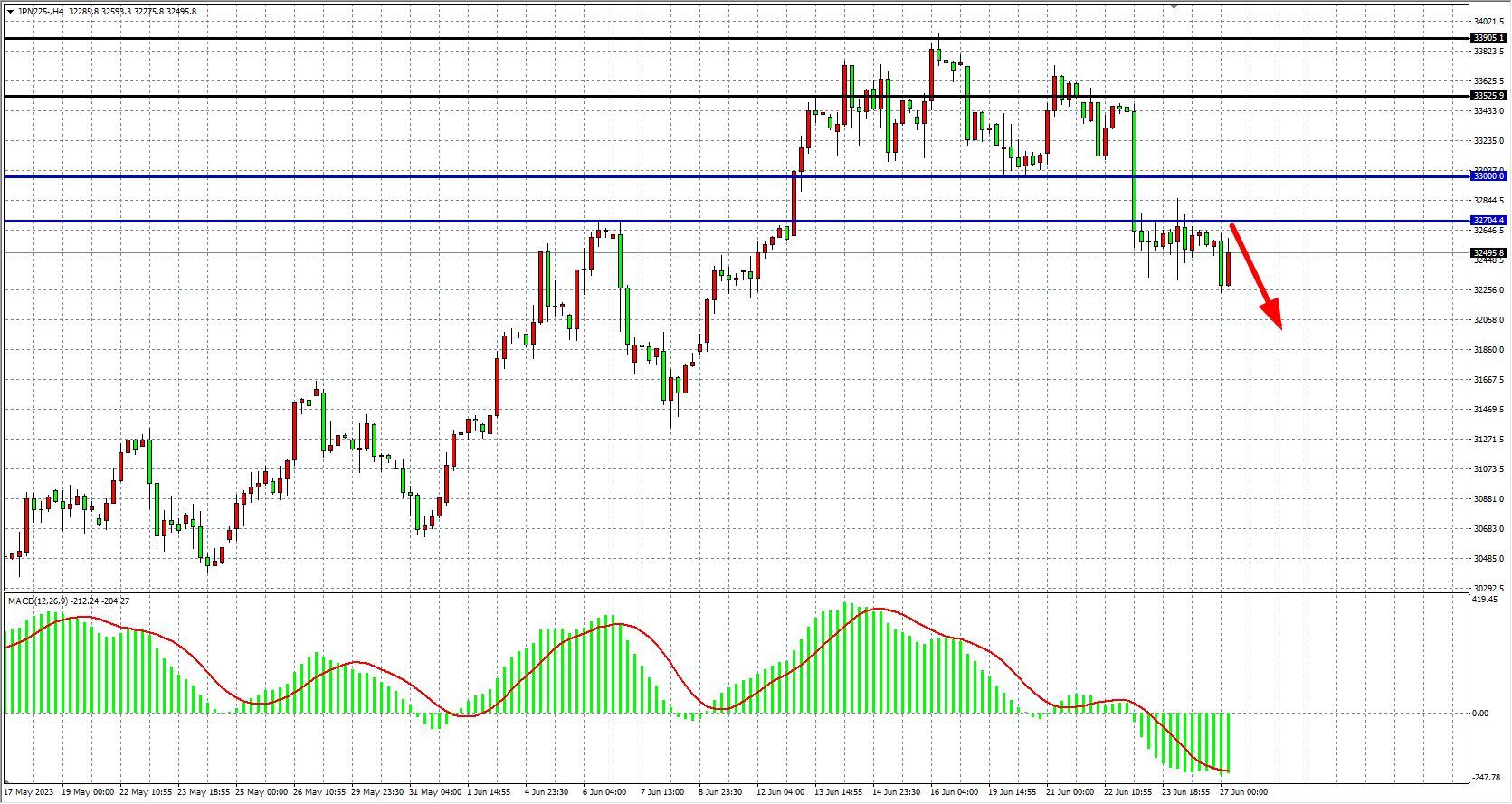 JPN225四小时图