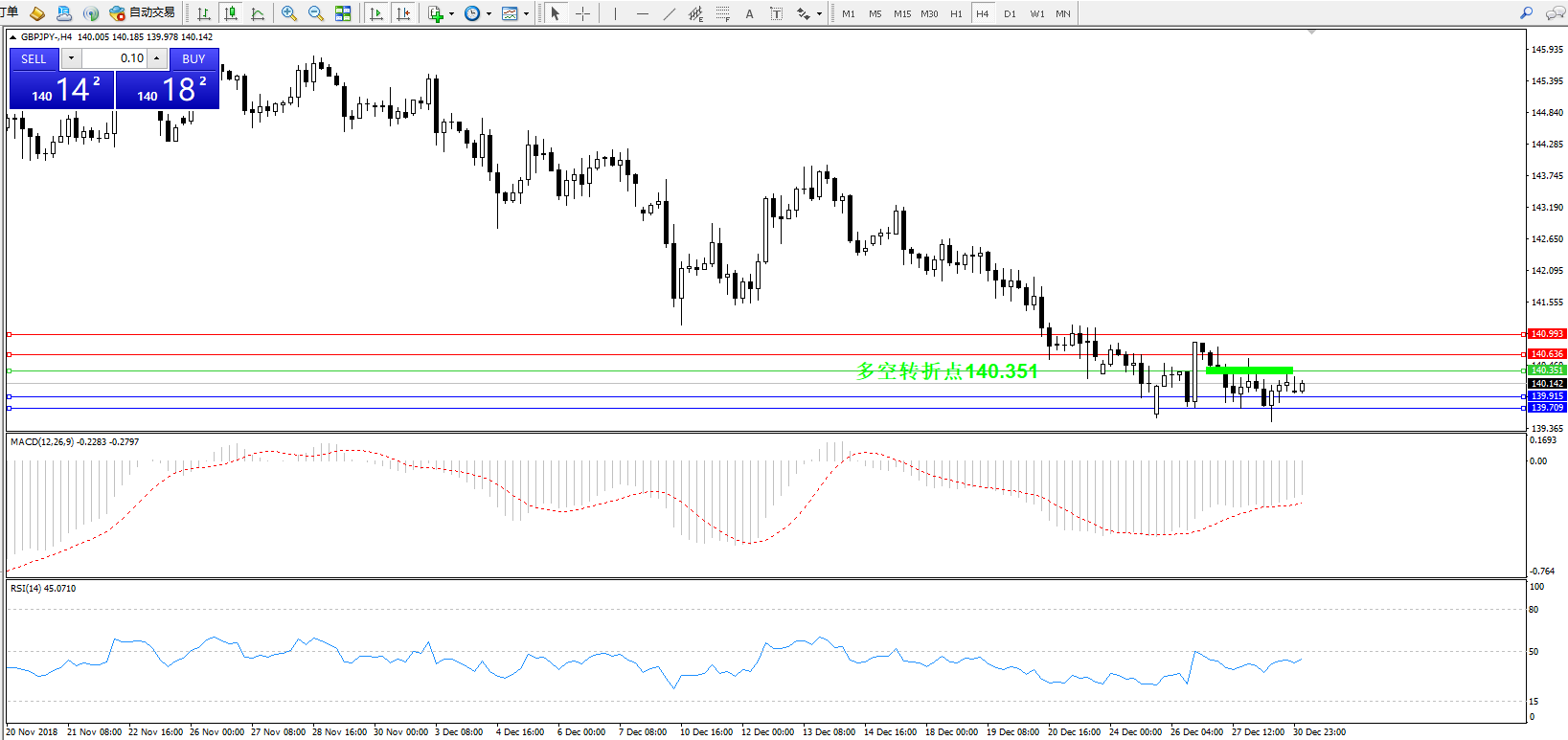 交易策略:140.351下方看跌,目标139.915139.709